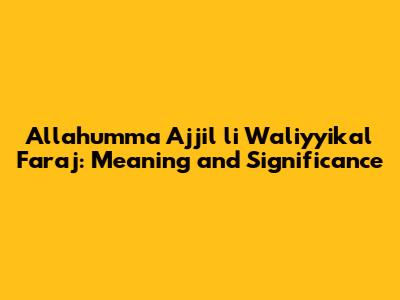 Allahumma Ajjil Faraj: Meaning And Significance