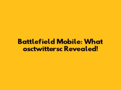 Battlefield Mobile: What Osctwittersc Revealed!