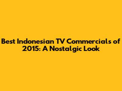 Best Indonesian TV Commercials Of 2015: A Nostalgic Look