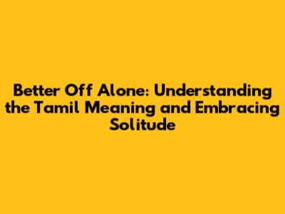 Better Off Alone: Tamil Meaning & Why It's Okay