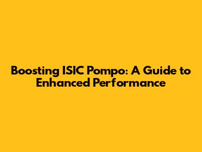 Boosting ISIC Pompo: A Guide To Enhanced Performance
