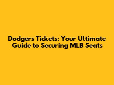 Dodgers Tickets: Your Guide To Securing MLB Seats