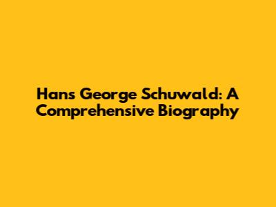 Hans George Schuwald: Life, Legacy, And Impact
