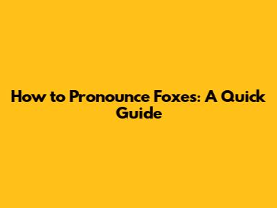 How To Pronounce 'Foxes': A Quick Guide