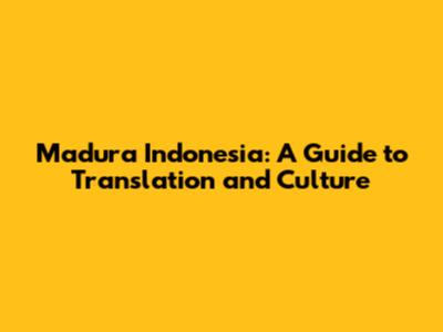 Madura Indonesia: A Guide To Translation And Culture