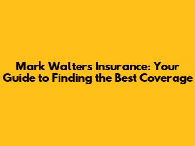 Mark Walters Insurance: Your Guide To Finding The Best Coverage
