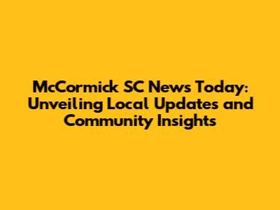 McCormick SC News Today: Local Updates & Community Insights